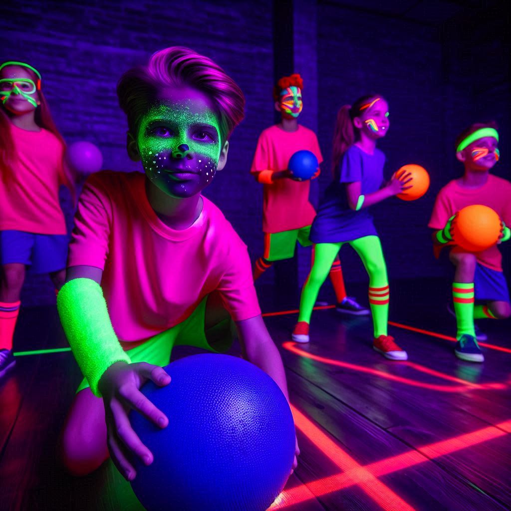 Black light dodgeball is so much fun. Buy some neon colored dodge balls (or any soft neon colored balls will do the trick), have the children dress up or paint themselves in neon war paints and let the games begin. If your glow party is outdoors, a fun alternative is to use color powder balls filled with UV powder. That way when players get hit they also get splashed in color. Check out our color powder guide for more details.