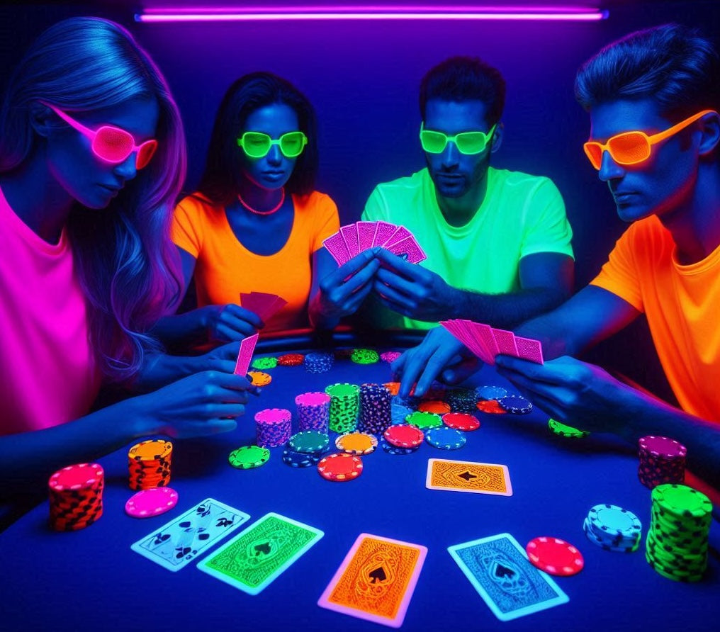 Buy a deck of UV reactive playing cards and you can turn any of your favorite card games into glow party games. Circle the cards around a cup for glowing games of King's Cup.Or if you can also purchase neon poker chips or paint poker chips with neon paint you could play glow in the dark poker.