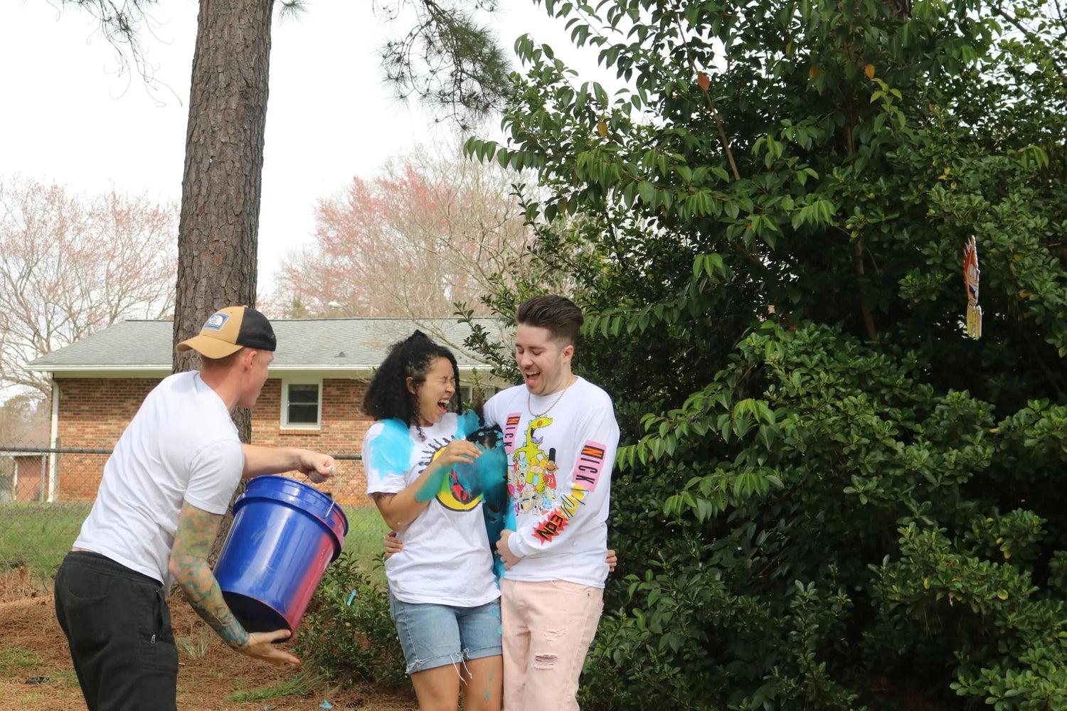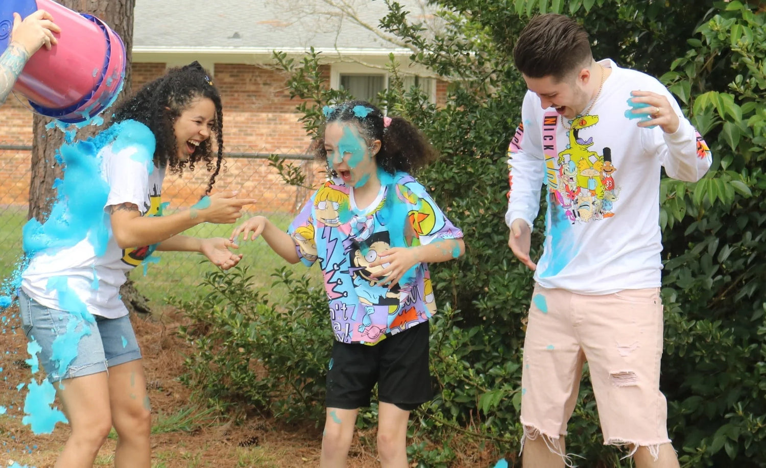 3. On ONE, the bucket with the correct color of instant slime is then tipped over the expecting parents heads and bodies, revealing the gender of their bundle of joy!