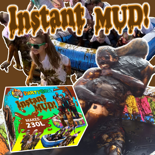Party GOAT Instant Slime was special designed to make slime fundraisers quick, easy, safe & hassle free. Unlike slime recipes found online our Slime mix will not stick in your hair or ruin your clothes. The product is non toxic, biodegradable, and non staining. Simply mix the slime powder with water and you are ready to slime!! Instant Mud is also available for dumping mud on people at mud runs and mud themed fundraisers.Â