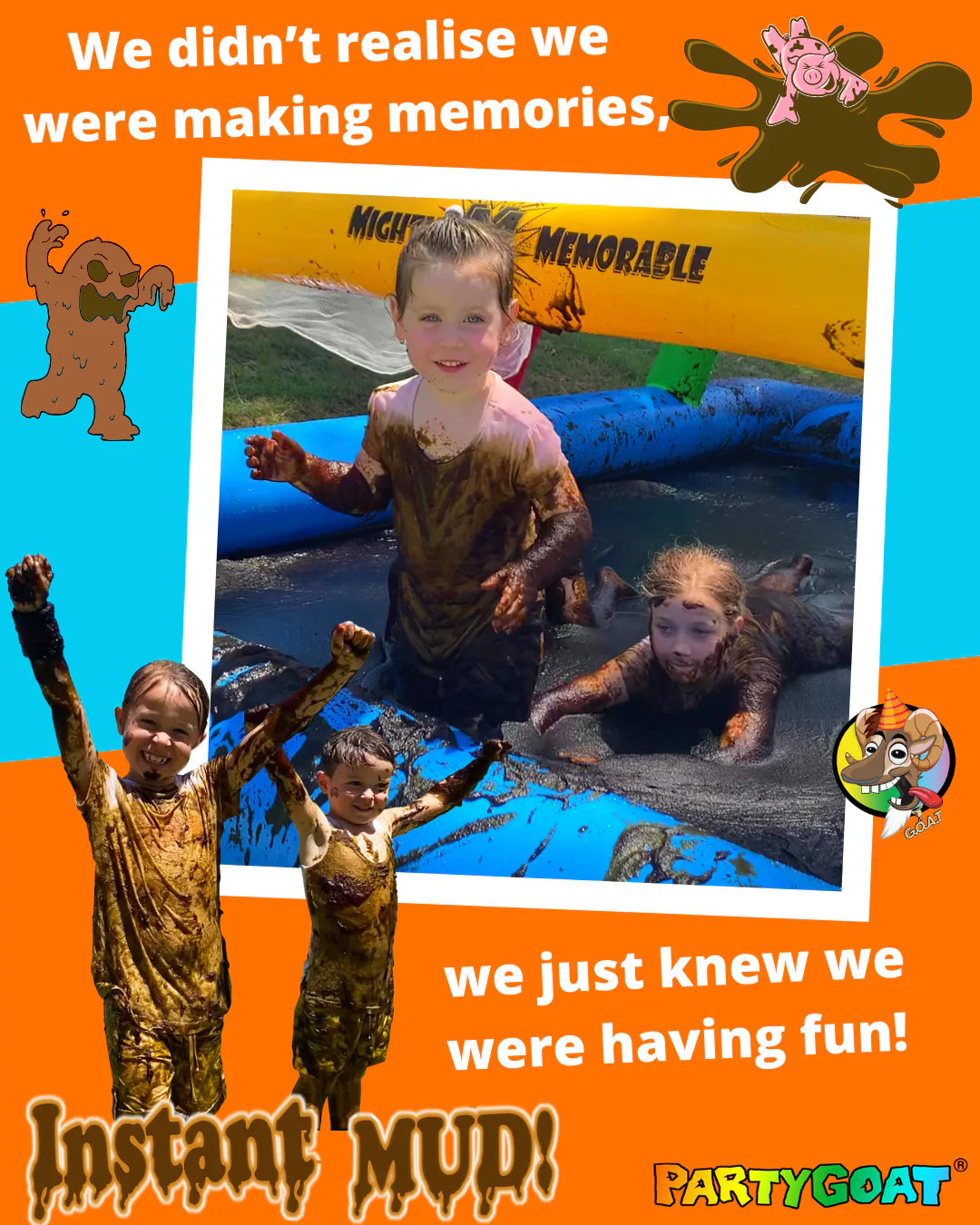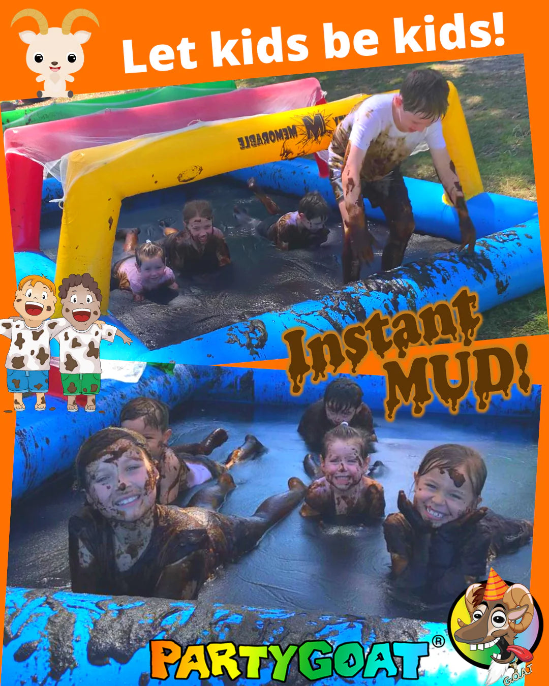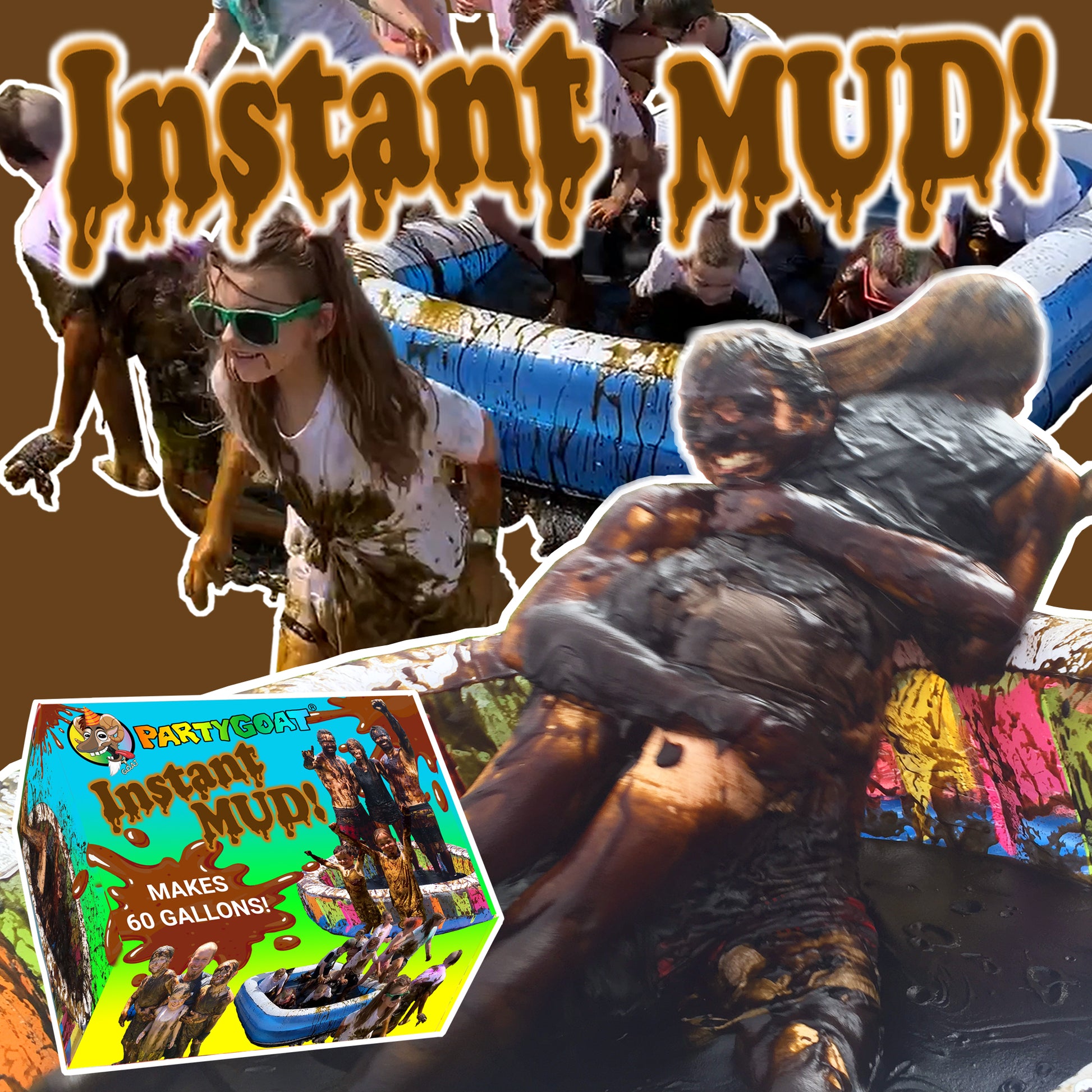 - Party GOAT Instant Mud was specially designed to make it as easy as possible to make a pool or pit full of mud.