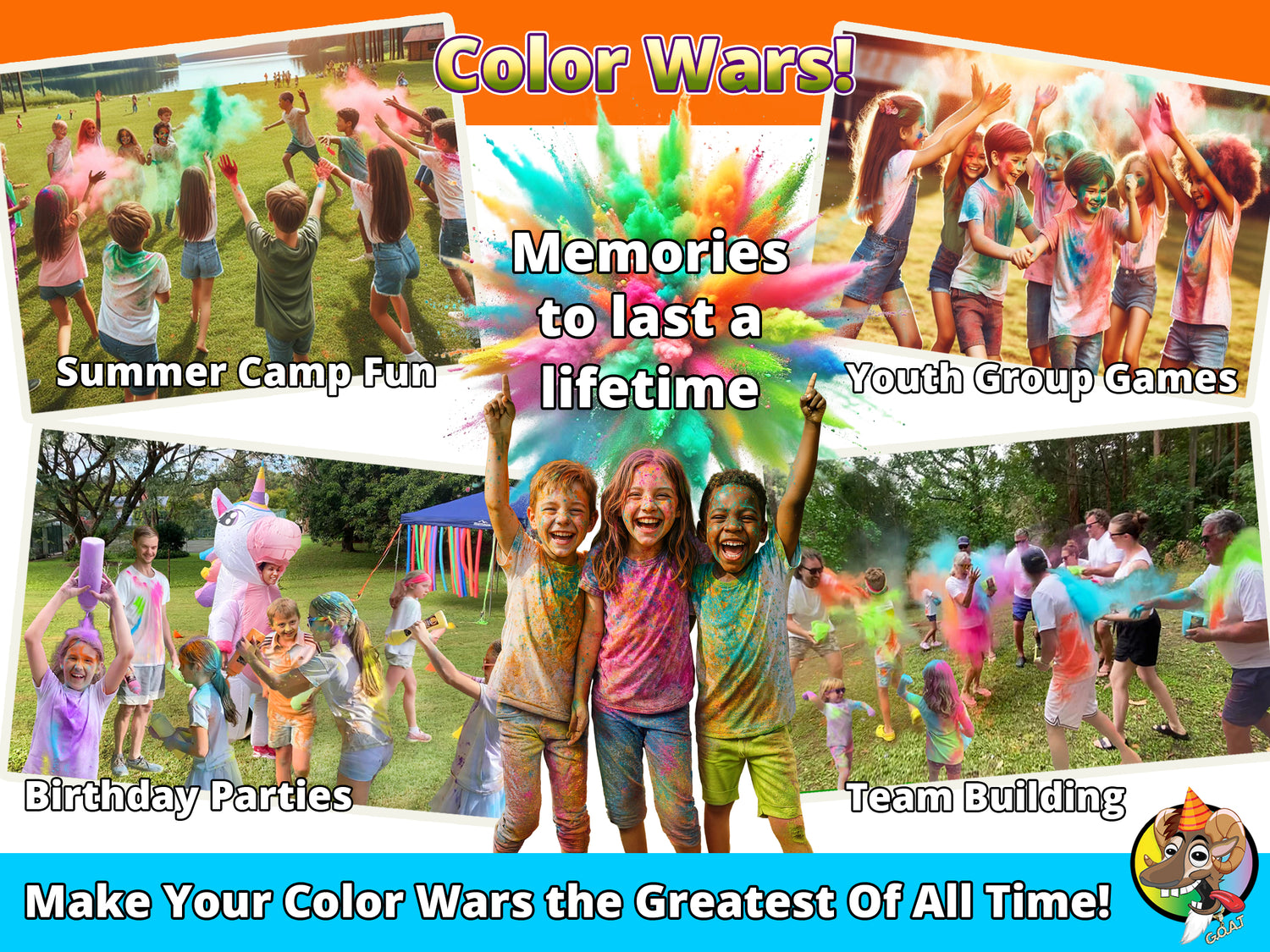 Want your Color Run or Color War to be even more fun & memorable? Party GOAT Instant Slime and Color Powder are the perfect combination to make sure everyone is covered in color. Double the fun with a color powder and slime combo!
