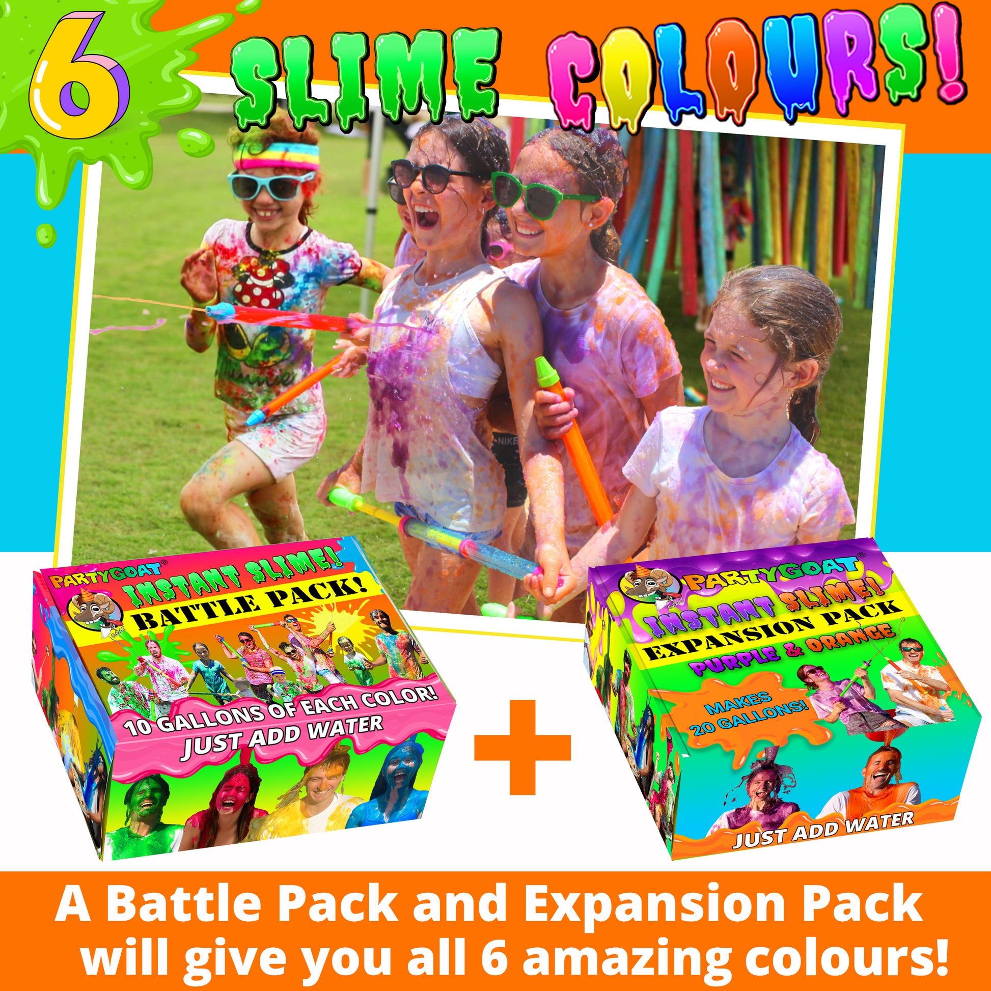 Purchase both a Battle Pack and Expansion Pack, to have 10 Gallons of all 6 colors of Instant Slime. That's a huge 60 gallons of slime that is perfect for color wars, slime color runs, slime fundraisers and more.