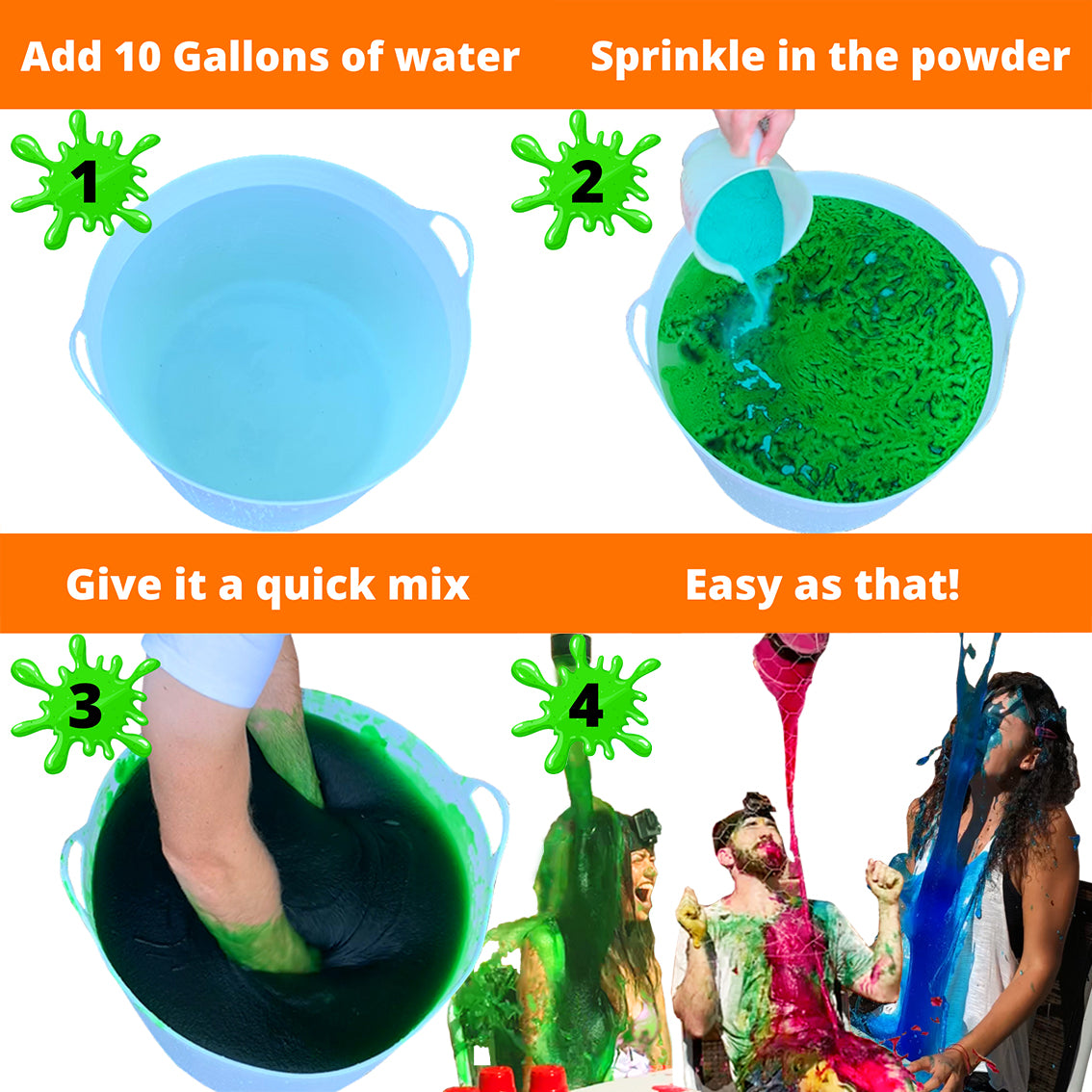 - Makes 10 GALLONS (38L) of each color slime! A total of 40 Gallons per pack.