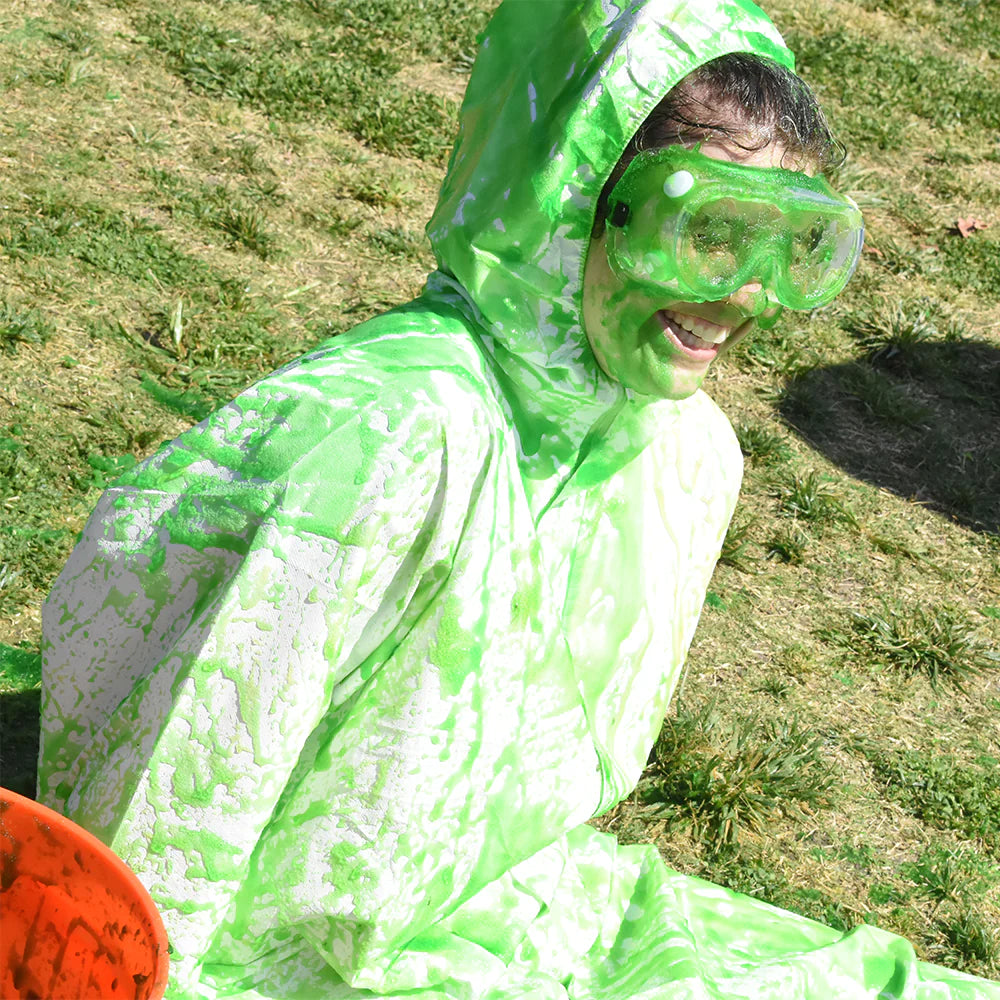 Party GOAT® Slime easily washes off skin & comes out of clothes in a normal washing cycle.
