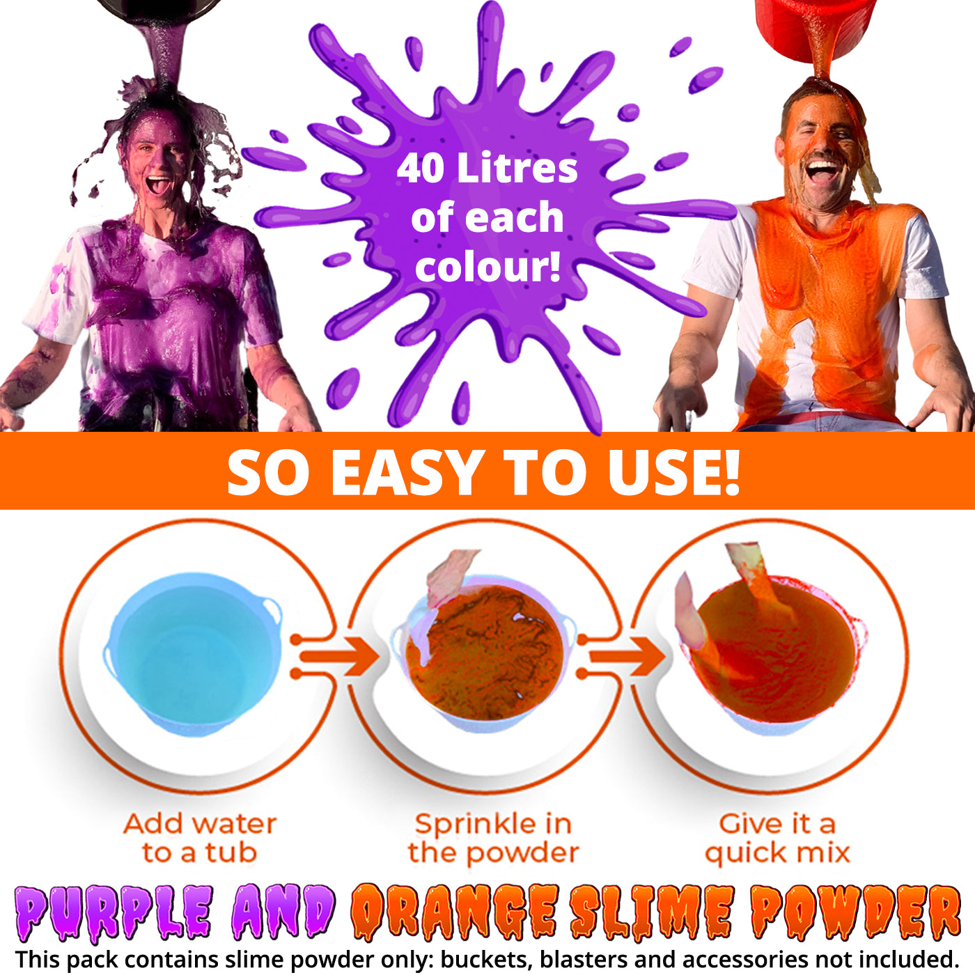 • UNFORGETTABLE FUN: The Instant Slime Expansion pack includes 2 new slime colors - purple & orange slime. Slime can be dumped on heads, sprayed from water guns, or added to slime pools for hilarious slime games.