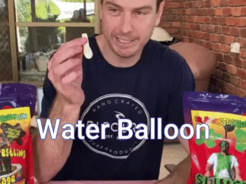 You will need to play around with the amount of slime powder to suit the size of your water balloons. A little less powder will make for a more watery slime, a little more powder will make for a thicker slime.