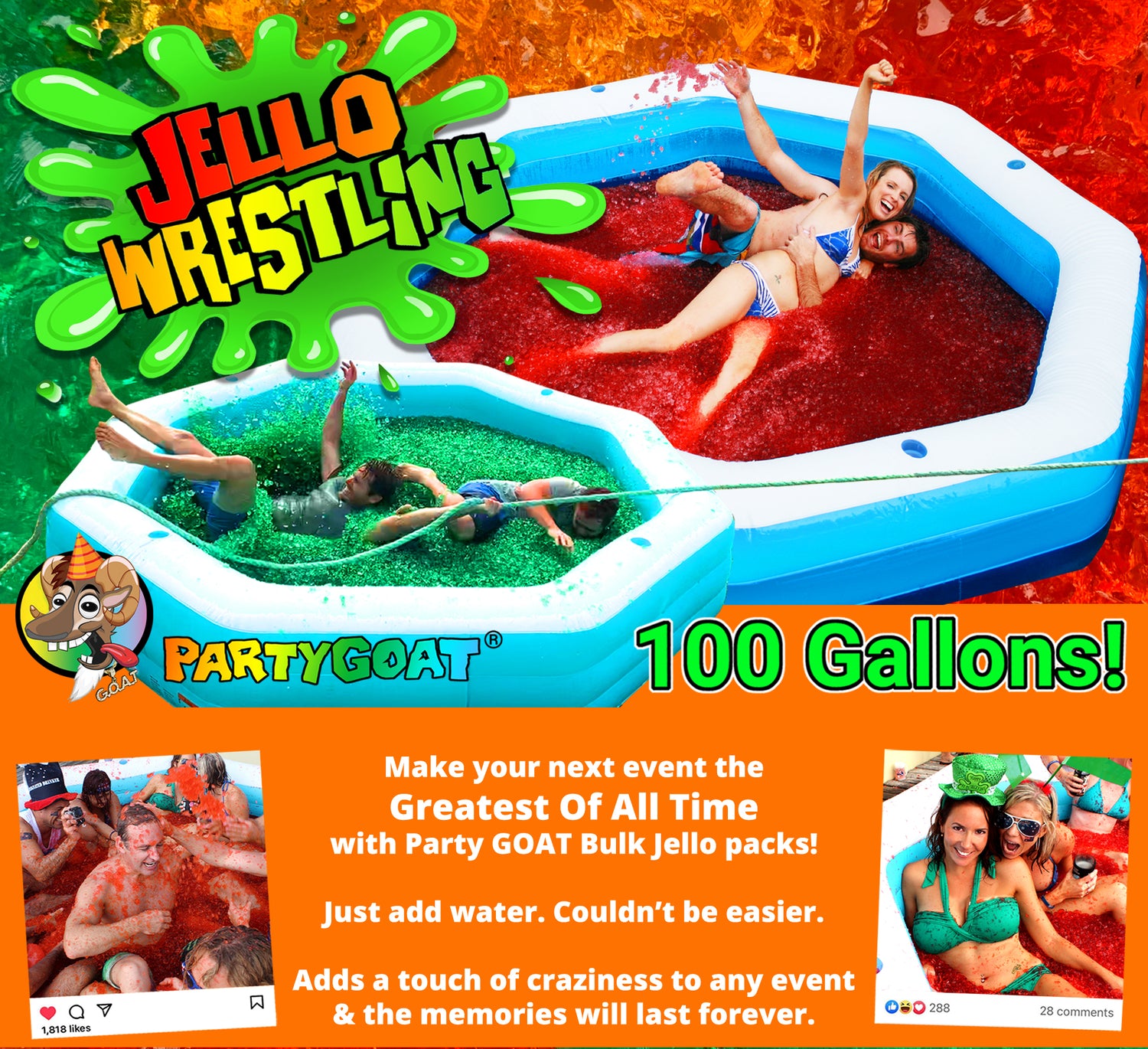 ❤️ Each Jello Wrestling Kit makes 100 Gallons (380L) of THE BEST bulk Jello for Wrestling!